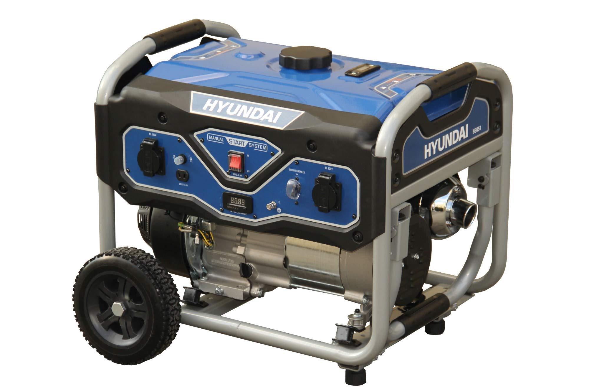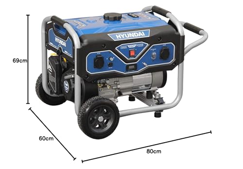 HYUNDAI Benzin Generator BG55051, Stromerzeuger mit 7PS Motor und 3.0kW max. Leistung, Handstart, Notstromaggregat für Baustellen mit 2 x 230V Anschlüssen, Stromgenerator, Stromaggregat